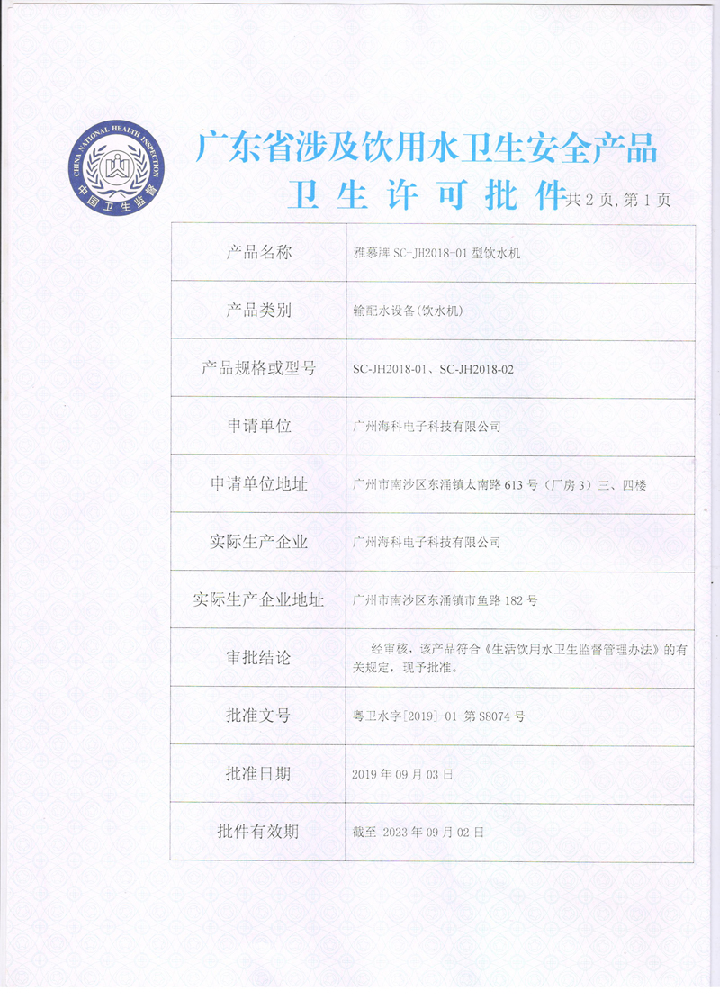 粤卫水字【2019】-01-第S8013号
